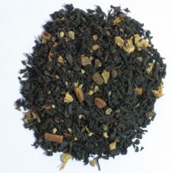 Té negro, trocitos de manzana, canela, cilantro, cardamomo, naranja y pimienta. Una sabia mezcla de manzana y naranja con especias, de un agradable aroma y un intenso sabor, para tomar solo o con leche.